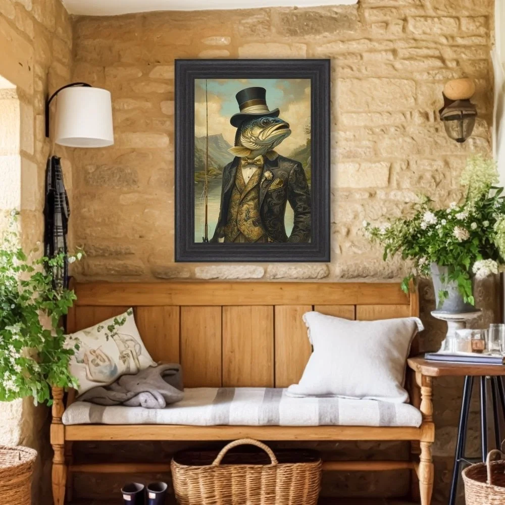 Giclee print displays sharp, vivid images with a high degree of colour accuracy. Mounted print in a lovely blue grey frame. Timeless!